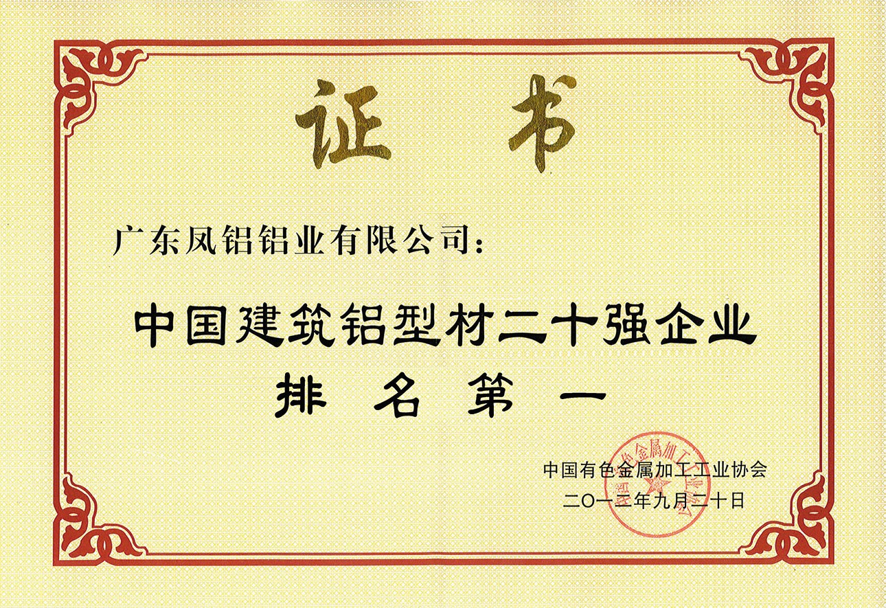 2012年中國建筑鋁型材二十強(qiáng)企業(yè)排名第一